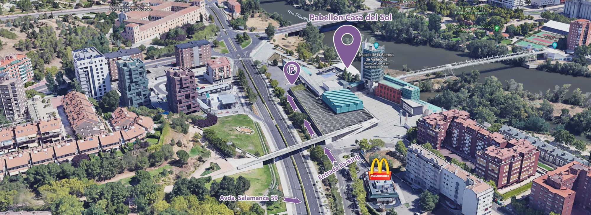 Descubre cómo acceder al aparcamiento y al Pabellón Casa del Sol.